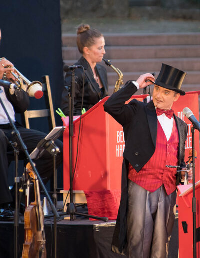 Der Abend wartet noch mit mancher Überraschung auf: So verwandeln sich die Musiker flugs in eine bajuwarische Trachtengruppe, schmettern „Hoch drob’n auf dem Berg“ und jodeln gar vor lauter alpiner Verzückung. Der populäre Komponist Franz Grothe (1908 bis 1982) schrieb das Gros seiner Lieder für Filme. Daher geht es meistens um Liebe, Amouren und Verführung. Viele Steilvorlagen für gewitzte Kapriolen des Orchesters und seine famose musikalische Hommage.“