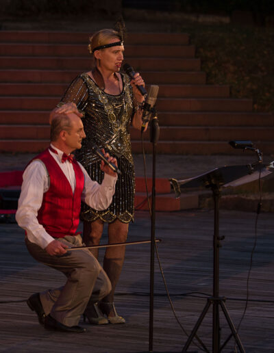 (…) Zu hören sind dabei auch andere Klassiker der 1920er-Jahre, wie „Mein kleiner grüner Kaktus“, „In der Bar zum Krokodil“ oder „Am Sonntag will mein Süßer mit mir segeln gehen“. Die Revue verspricht eine Zeitreise zurück in die Goldenen Zwanziger – und dies aus einer einzigartigen Perspektive.