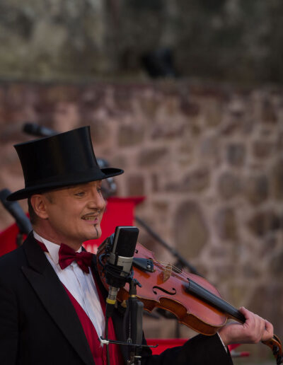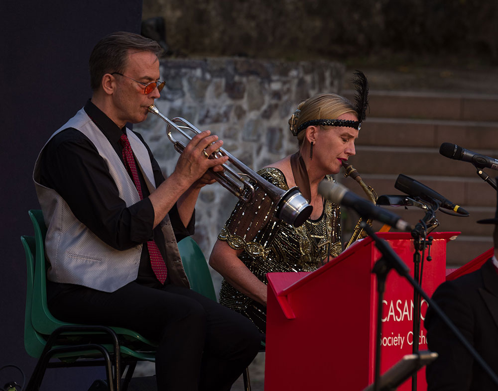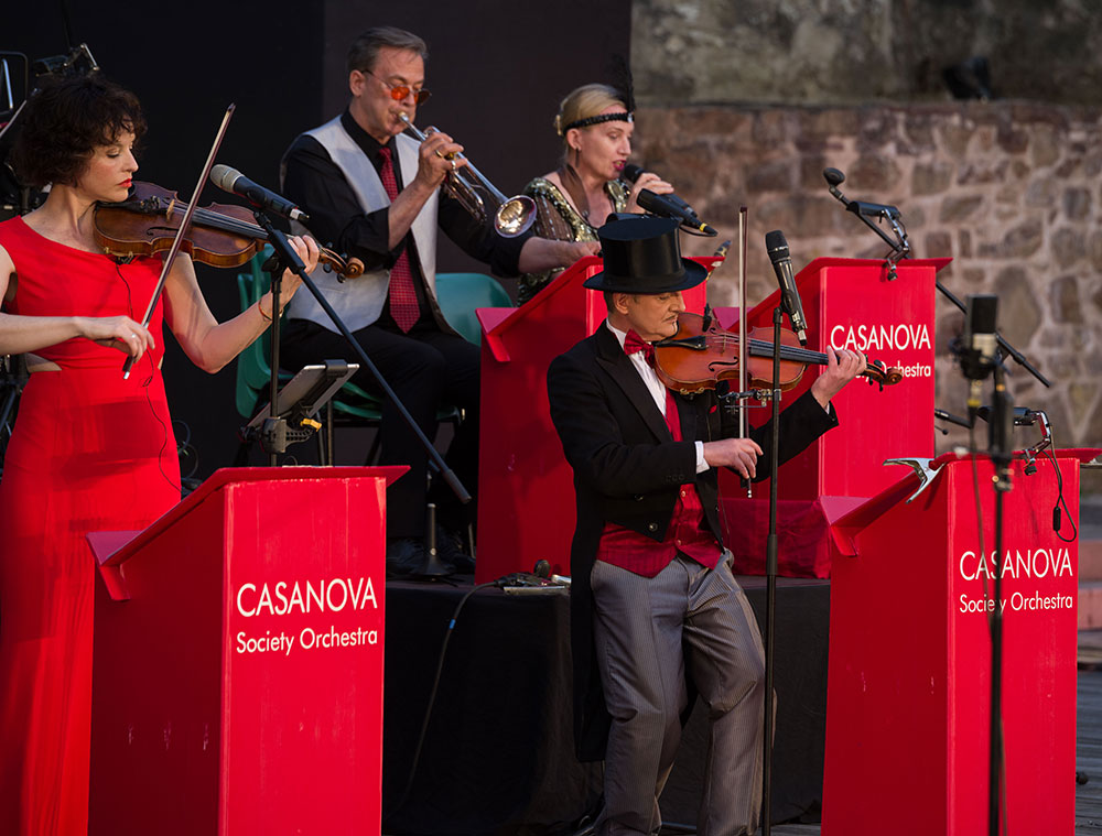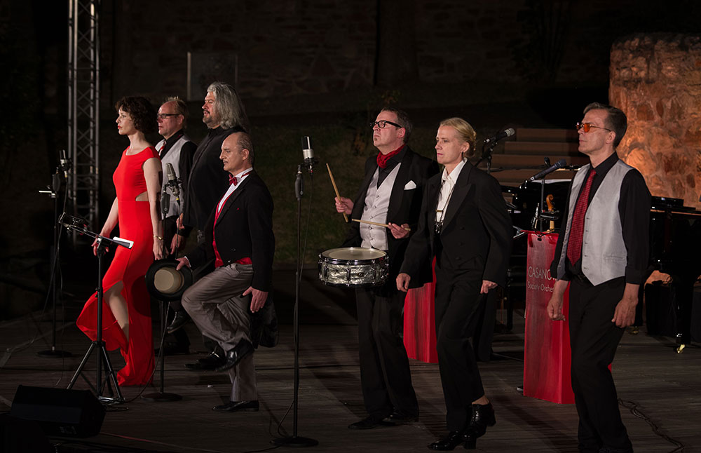 Originale Arrangements weltbekannter Komponisten und Arrangeure dieser Zeit garantieren den authentischen Klang der goldenen 20er Jahre: wild und stilvoll, anrührend, romantisch und verrucht. Durch das Programm führt an Gesang, Violine Obligat und Zylinder mit seinem zartschmelzendem Bariton der Chefcasanova Andreas Holzmann. Mehr als nur Begleitung ist ihm das Casanova Society Orchestra mit seinen insgesamt famosen Musikern und Musikerinnen.